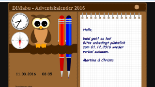 Aktuell ist der Weihnachtskalender, ein Test für das Mathematik-Abenteuerspiel "die Matheburg" installiert.